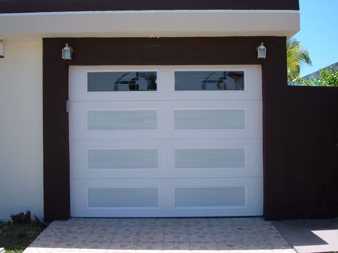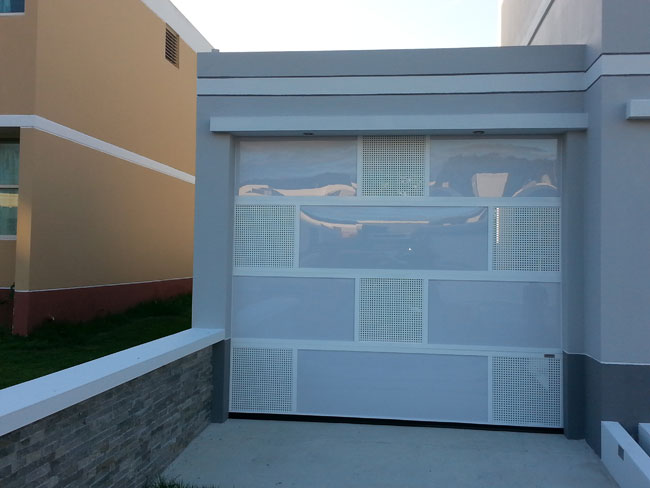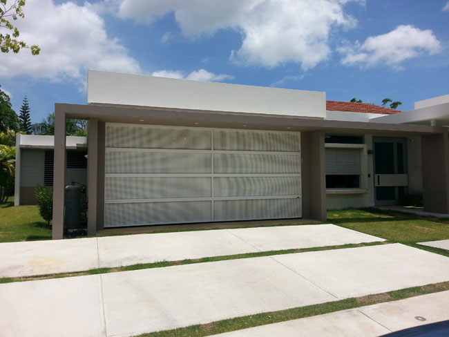 Las puertas de Perforated Garage Doors son un producto de Puerto Rico y tienen la excelente función de permitir la brisa tropical a través de sus perforaciones cuidadosamente pensadas para el trópico.