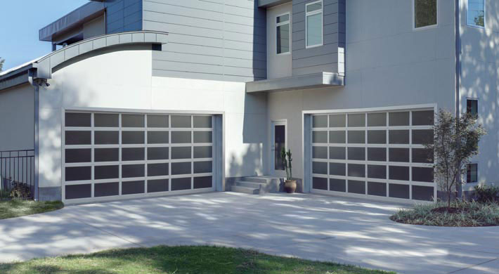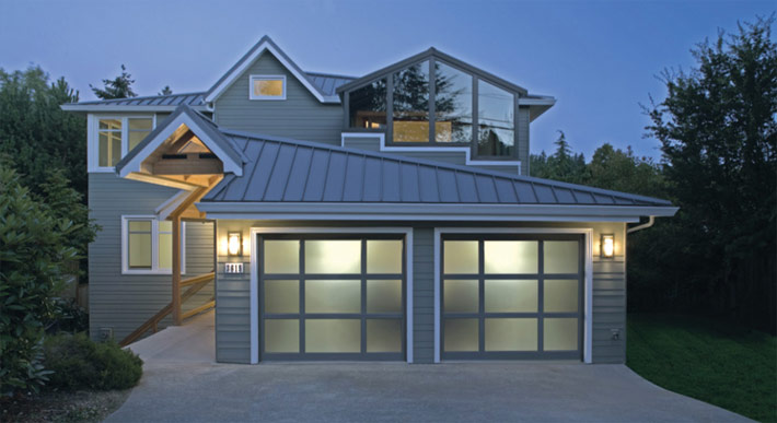 Estas puertas de garaje modernas y elegantes reflejan perfectamente las líneas límpias y extensiones de cristal del diseño contemporáneo de tu hogar. Disponibles en una variedad de opciones de ventanas y colores de marcos.