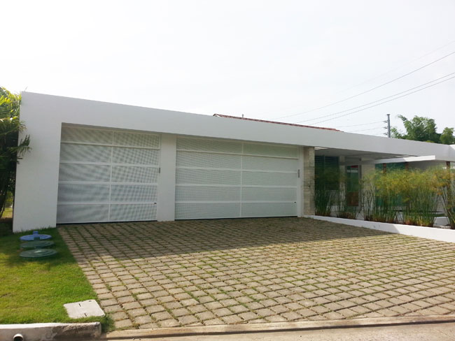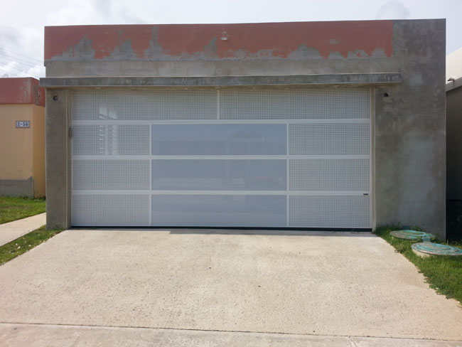 Las puertas de Perforated Garage Doors son un producto de Puerto Rico y tienen la excelente función de permitir la brisa tropical a través de sus perforaciones cuidadosamente pensadas para el trópico.