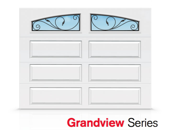 No es tu puerta habitual... Grandview es construida con una sección superior de 24” para mostrar la bella selección de ventanas extra-grandes. Escoja la confección estilo viejo-mundo del gran hierro forjado o la simplicidad clásica del trazado cuadricular o del gran cristal para complementar el exterior de tu hogar y aumentar su valor. Cualidad excepcional y la oportunidad de crear varios estilos diferentes con una gran variedad de estilos de paneles hace de Grandview la elección perfecta para el propietario exigente.